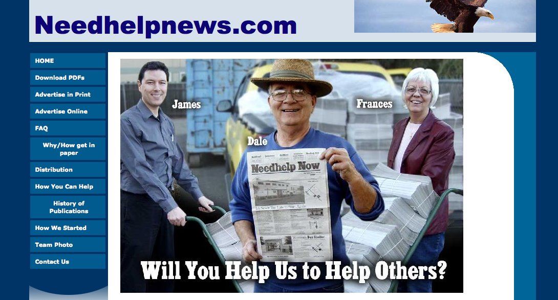 In many ways, “Need Help Now” is like a small phone book containing information about services for people with problems. Because of this perspective, this resource contains information about help offered from government, nongovernment, and faith-based groups. This little newspaper provides a “one-stop-shopping” place for resources. Best of all, it is free. Dale, Frances, and James provide this service out of love. They know what it is like to be in a desperate situation with no place to turn, and they do not want others to face that darkness.